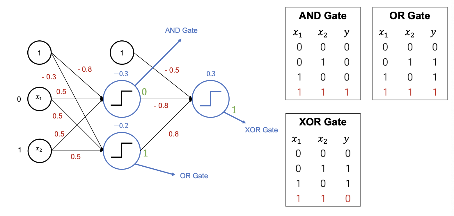 XOR problem을 해결할 때에는 Multi-Layer Perceptron 사용 (Hidden layer)
